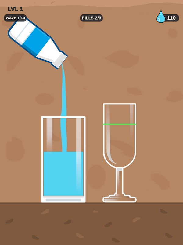 Используйте свое чутье и идеально переливайте воду из одного стакана в другой! Заполните его до краев, чтобы получить отличный результат!. Заполните слишком мало или слишком много, тогда вы потерпите неудачу