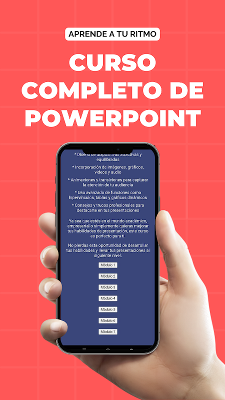 В мире, где важна визуальная коммуникация, мастерство создания презентаций стало фундаментальным требованием для студентов, профессионалов и предпринимателей. С нашим приложением вы получите передовые и стратегические навыки для эффективного использования PowerPoint, от структурирования презентации до включения потрясающей графики и анимации.