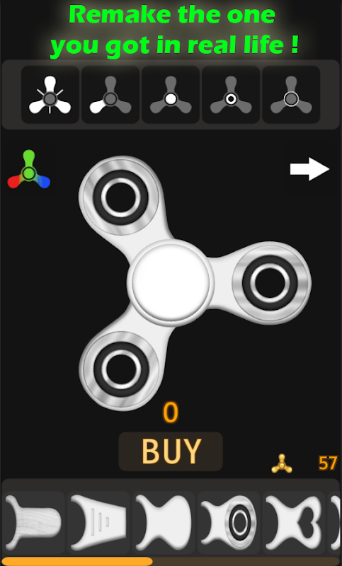 - Заставьте его вращаться, чтобы собрать монеты: много частей, чтобы настроить свой собственный Spinner, менять подшипники, форму, цвета и многое другое.