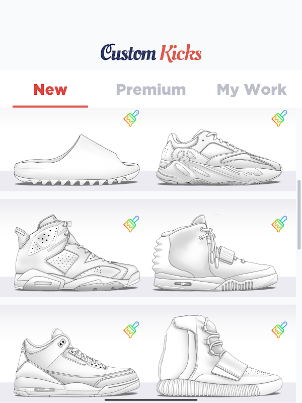 После того, как вы закончите, ваше изображение кроссовок можно сохранить и получить к нему доступ в любой момент в разделе «Моя работа», что позволит вам вернуться к произведению позже и обновить его или поделиться им со всем миром. Именно поэтому наше приложение является идеальным инструментом для кастомайзеров кроссовок, которые могут сначала протестировать свой дизайн виртуально, а затем использовать его в качестве эталона при переносе дизайна на реальную пару обуви.