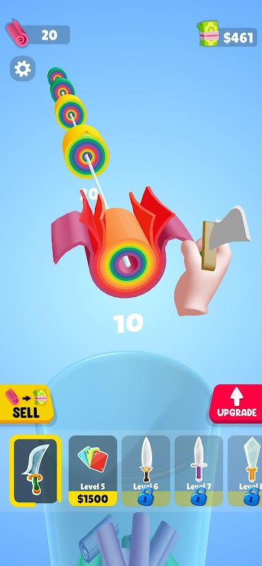 Щелкните, чтобы выстрелить ножом. Разрезайте рулоны слой за слоем. Продавайте куски. Зарабатывайте деньги. Улучшайте свой нож. Начинайте снова и снова.