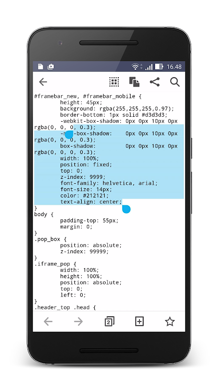 Чтобы скопировать, нажмите CSS или JS в осмотрите раздел элемент, удерживайте долго о начале кода текст, который вы хотите скопировать. Он покажет вам начальную и конечную точки, просто перетащите конечные точки в конце кода текст, который вы хотите скопировать. Это автоматическое копирование в буфер обмена.
