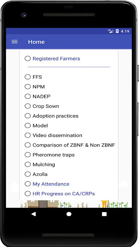 Daily activities Application is to capture the field functionary’s handled works to build the capacity building of the farmers on ZBNF practices covering soil fertility management, pest management and botanical extracts for controlling pests. Also useful in capturing data of video dissemination to the farmers, master data NPM shops with GPS coordinates, registering farmers with their lands and its categories, season wise crop sown, various practices followed by the farmer etc.