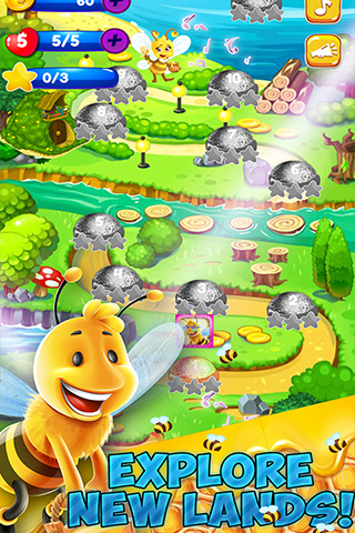 All levels are full of challenges, & different targets to meet that keep you focused in playing the game all the time. Match two or more Bees of the same color to clear the level and collect the different items given as Target for each level. Get numerous Boosters & Powerups during gameplay to meet your targets.