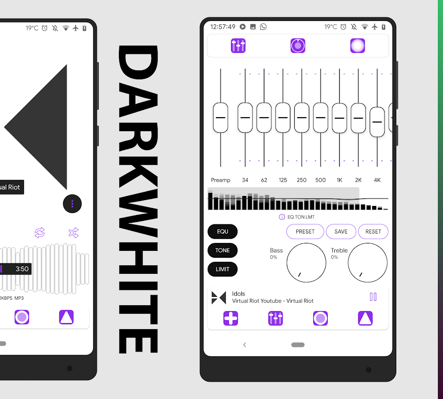 Darkwhite - это обложка для темы PowerAmp со светлыми цветами и другими полезными параметрами. Требуется PowerAmp V3.