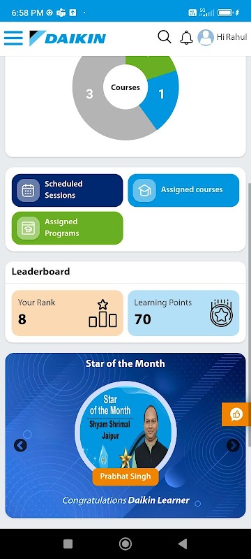 Daikin Training - это приложение для пользователей Daikin, которое может посещать тренинги. Учащийся будет иметь доступ к информации, относящейся к программе и курсу, расписанию обучения, учебным материалам и другим сопутствующим службам доставки, применимым к курсу.