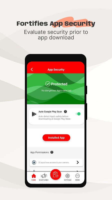 Data Guard сканирует приложения в Google Play Store перед установкой и выявляет небезопасные приложения. Он также сканирует приложения, установленные на вашем устройстве, и предупреждает вас об обнаружении небезопасных приложений, чтобы гарантировать, что каждое приложение может читать только свою разрешенную информацию.