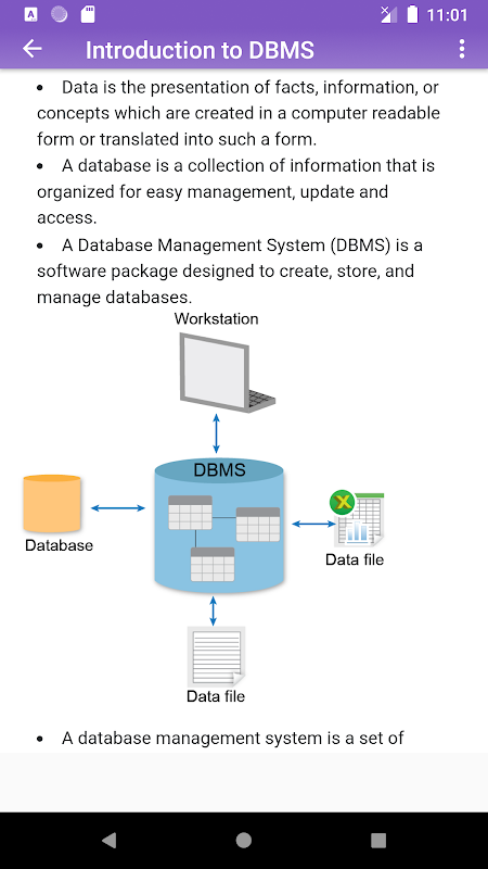 Это автономное приложение базы данных помогает студентам изучать концепции базы данных без мозгового штурма, усваивая знания, предоставленные в удобном для запоминания / чтения формате, откладывая все ненужные длинные подробные тексты из заметок базы данных и словаря.
