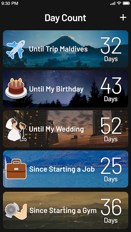 • Add an infinite number of events like retirement calculator, baby countdowns, birthday reminder.