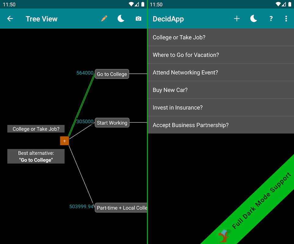 Неограниченное количество решений, полная помощь, обмен – храните неограниченное количество решений. Получите доступ к обширному разделу справки, чтобы узнать о принятии решений и использовании деревьев решений. Легко обменивайтесь решениями посредством экспорта/импорта и снимков изображений.