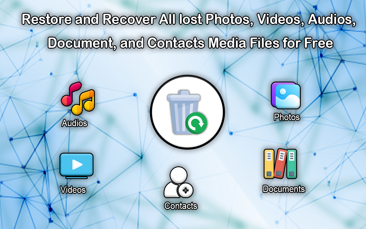 Теперь верните все свои медиафайлы, включая фотографии, видео, аудио и другие файлы. Восстановите документы с помощью приложения для восстановления файлов. Восстановление данных теперь одним нажатием, чтобы получить резервную копию фотографий, видео, аудио и других файлов документов. Восстановите удаленные данные и файлы, включая удаленные фотографии, видео, аудио и файлы документов, в этом приложении для восстановления и восстановления.