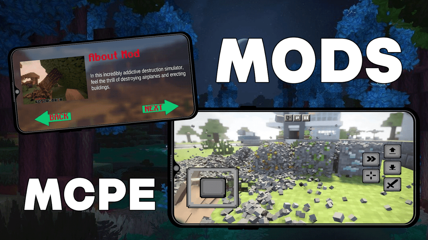 Спасибо, что выбрали наш Destroy Mod для MCPE — наслаждайтесь разрушением вместе с друзьями, создавайте новое оружие и уничтожайте все, что видите, с помощью эпичных взрывов и многого другого, рекомендуйте наши дополнения своим друзьям и играйте вместе.