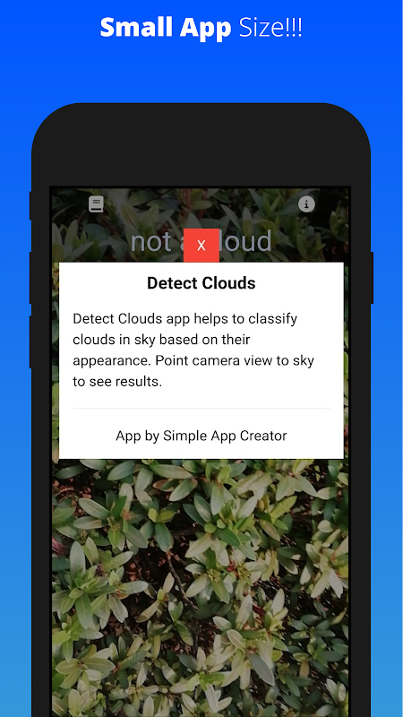 💯 Удобный интерфейс: Обнаружение облаков предоставляет удобный интерфейс, позволяющий без особых усилий наводить камеру на небо и наслаждаться мгновенной классификацией облаков. Наслаждайтесь безупречным и восхитительным пользовательским интерфейсом во время ваших приключений в облаке.