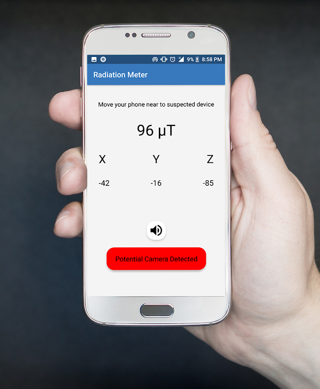 Our app is the solution to detect hidden cameras and microphones. We use a specially developed algorithm to detect hidden camera around you. This app gathers the radiations from your surroundings and compare them with the radiations of a real camera. If they match we give you a warning alarm.