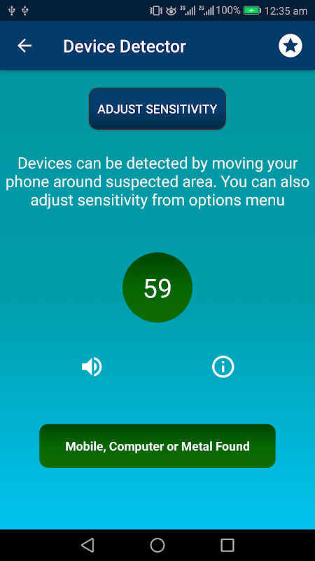 App is also a metal detector in addition to hidden device detector because metals have their magnetic field and the app will tell you if it encounters a metallic object. If you are trying to detect a camera then make sure there is no metallic object in the surroundings as it will distort the readings.
