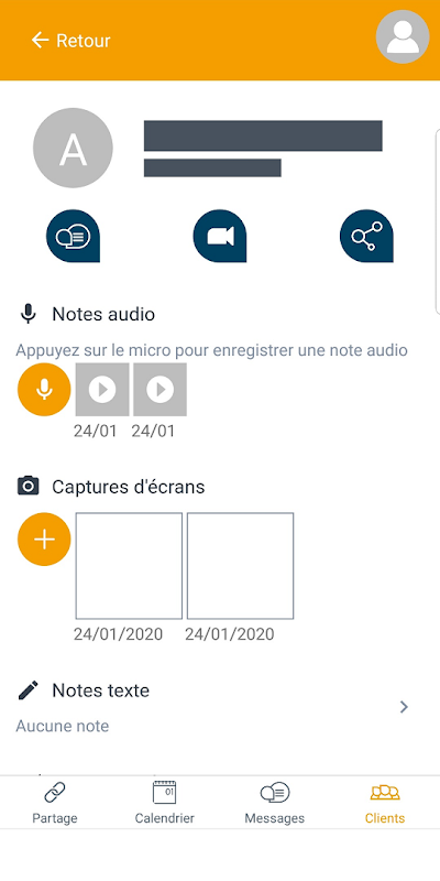 Retrouvez vos contacts dans votre répertoire Devisio, enregistrez des notes vocales ou écrites, importez des photos et partagez simplement ces informations.