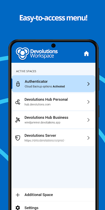 Devolutions Workspace объединяет ваш Devolutions Hub Business или Devolutions Server и Devolutions Hub Personal в одном месте, а также наше решение MFA Devolutions Authenticator, которое добавляет еще один уровень безопасности к вашим данным.