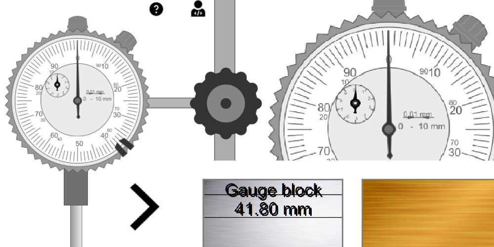 App imitates a dial indicator functionality. User can interact with dial indicator, move parts, rotate,rotate outer frame and so on. User can adjust usig gauge blocks ,measure pieces .