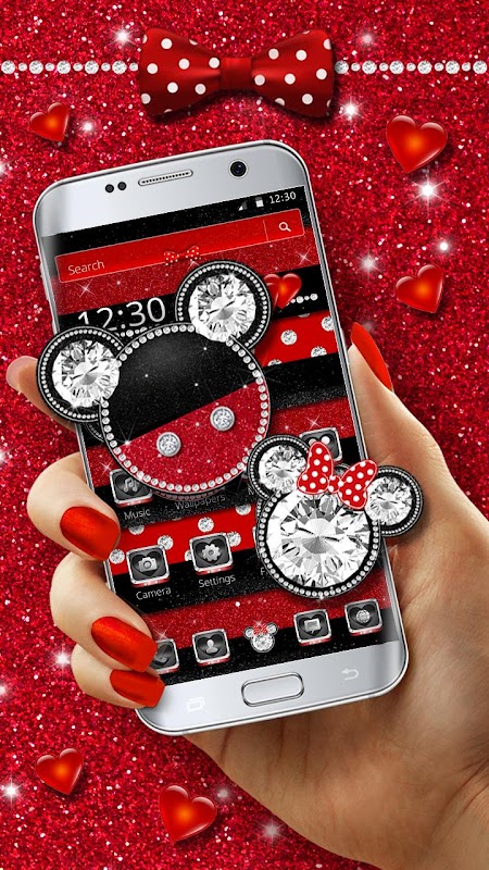 Diamond Glitter Mouse Theme станет одним из самых впечатляющих Red Glitter Micky, который привнесет ваш экран телефона в новый шикарный вид.