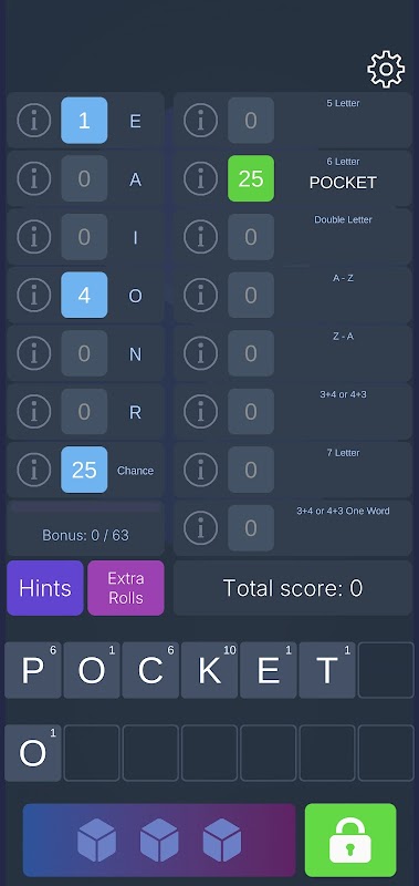 Dice Cipher — это свежий взгляд на классические игры в слова и кубики. Бросайте кубики, чтобы открывать буквы, составлять из них слова и получать большие очки. Это не совсем Scrabble, не совсем Yahtzee — но вдвое веселее!