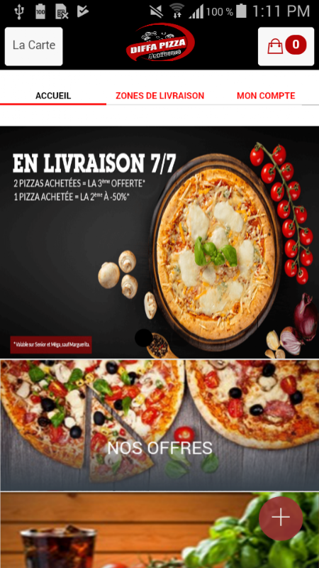 Приложение Android Diffa Pizza Аньере позволяет сделать заказ онлайн