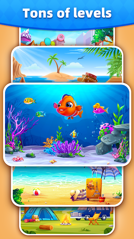 В этой игре тысячи различных картинок. Вы можете начать с поиска 5 отличий и стать профессионалом, решая более сложные уровни. Эти потрясающие яркие картинки включают мультфильмы, животных, еду, комнаты, красивые пейзажи и многое другое. Обычные уровни очень расслабляющие и не имеют таймера. Также вы можете использовать подсказки, чтобы найти скрытые отличия, если они вам кажутся трудными.