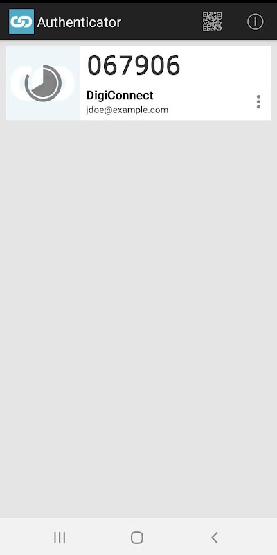 DigiConnect Authenticator генерирует коды для входа на платформу DigiConnect посредством двухфакторной аутентификации.