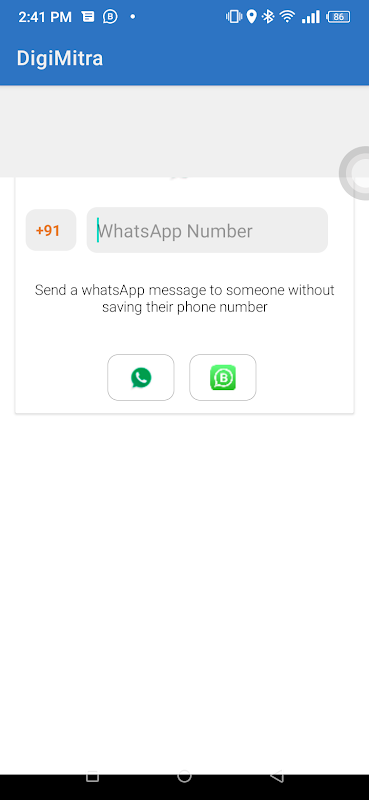 Используйте приложение Digimitra, чтобы открыть чат в WhatsApp с любым номером, не сохраняя его в контактах телефонной книги. Приложение без проблем работает как с обычным WhatsApp, так и с WhatsApp Business. Вы можете выбрать между обычным WhatsApp и WhatsApp Business для отправки сообщений на несохранённый номер.