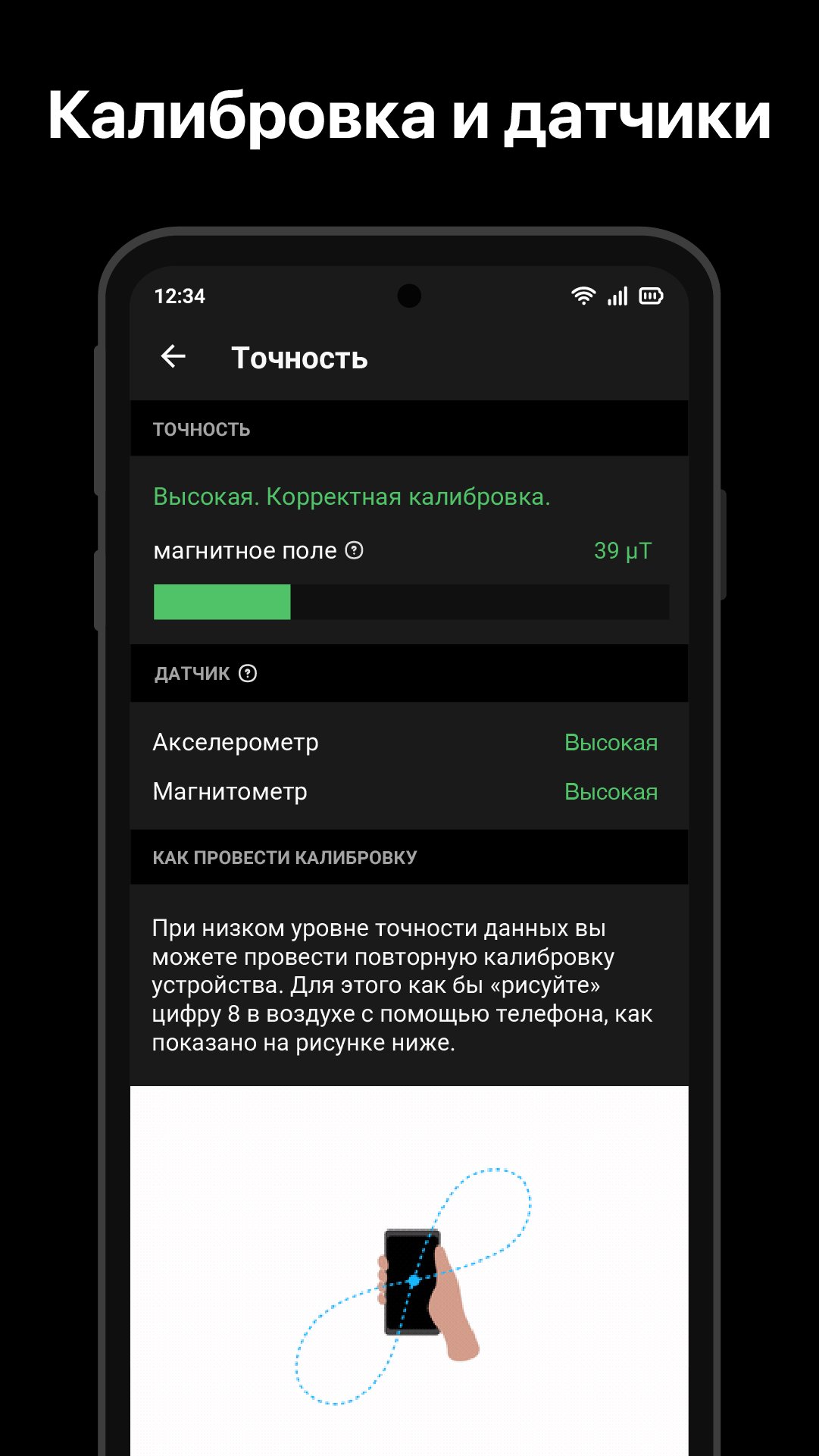 Это приложение использует магнитометр, гироскоп и GPS-датчики вашего телефона для точных результатов.