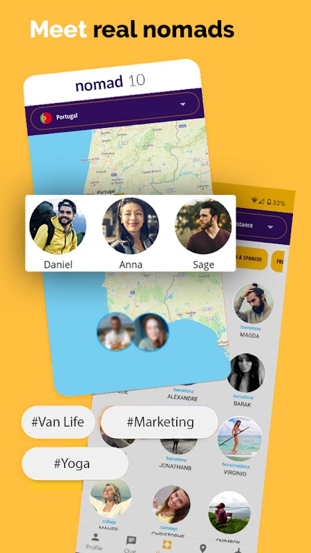 если вам нравится удаленная работа, путешествуя по миру, вам понравится приложение NOMAD 10 , которое поможет вам найти и связаться с другими перемещающимися кочевниками, чтобы поделиться своими интересами, профессиями, общением сеть и страсти, которые являются общими для Freeman Wanderers с использованием тегов профиля, что позволяет находить и автоматически добавлять вас в локальные чат-группы мест назначения, которые вы посещаете, или если вам нужны поездки кочевников.