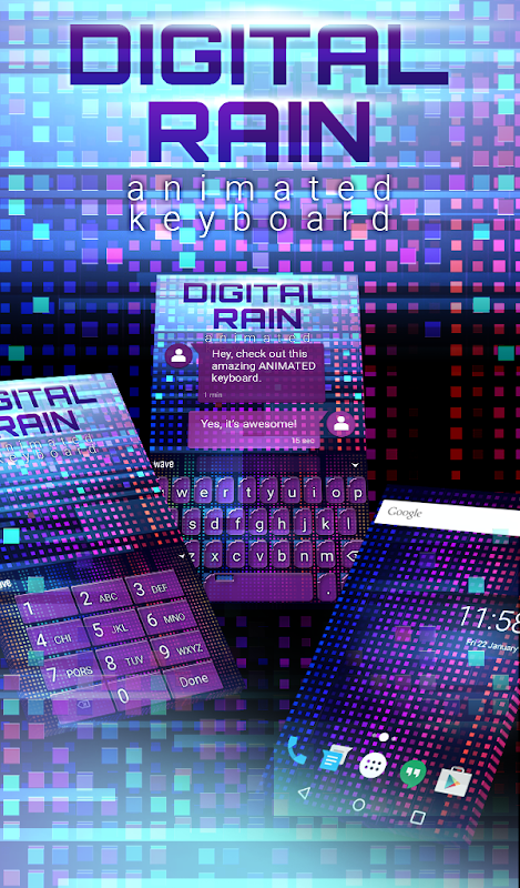 Цифровая анимированная клавиатура Rain – это потрясающее приложение для персонализации, которое придаст вашему телефону Android новый стильный вид. Крутые обои Wave и приложения для клавиатуры помогут обновить устройство всего за 3 шага:
