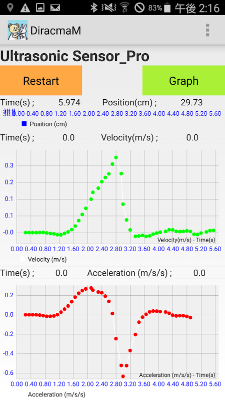 ・ Это приложение подключает к смартфону продукт ультразвукового датчика, разработанный и разработанный мобильной учебной лабораторией по физике (проект Diracma), и легко измеряет скорость и ускорение.
