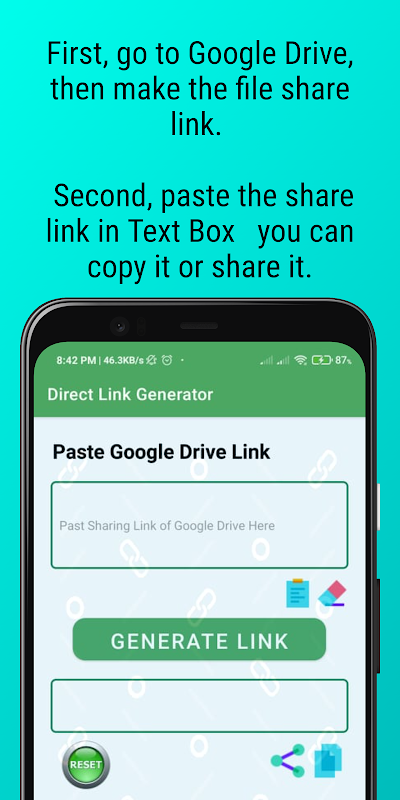 Это приложение позволяет пользователям быстро и легко преобразовать ссылку Google Диска в прямую ссылку. С помощью этого приложения пользователи могут быстро и легко обмениваться файлами, хранящимися на Google Диске, с кем угодно, не беспокоясь о том, что получатель должен войти в Google Диск для доступа к файлу. Приложение простое в использовании и не требует технических знаний. Все, что нужно сделать пользователям, — это вставить ссылку на Google Диск в приложение, и приложение сгенерирует прямую ссылку, которой можно поделиться с кем угодно. Приложение также позволяет пользователям настраивать ссылку, например устанавливать срок действия или пароль для защиты ссылки. Это приложение идеально подходит для всех, кому нужно быстро и легко обмениваться файлами, хранящимися на Google Диске, с другими.
