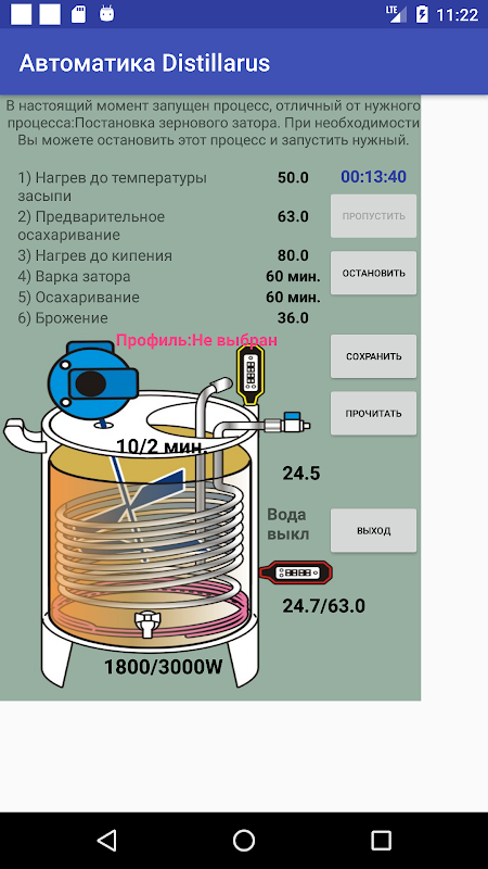 1) Реализовано отображение температуры 4-го и 5-го датчика температуры (при их наличии). 2) Исправлены ошибки работы нижнего узла отбора. 3) Реализован переход трехфазного контроллера в однофазный режим, начиная с заданной мощности. 4) Приложение выводит себя из сна путем беззвучных сообщений. Если сообщения не беззвучные, то отключите звук у канала "Channel HellDistiller NoSound". 5) Прошивка контроллера 5.038.