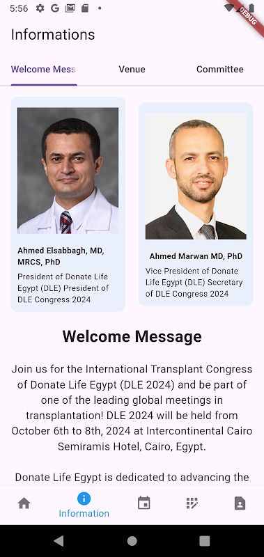Присоединяйтесь к нам на Международном конгрессе трансплантологов Donate Life Egypt (DLE 2024) и станьте частью одной из ведущих мировых встреч по трансплантации! DLE 2024 пройдет с 6 по 8 октября 2024 года в отеле InterContinental Cairo Semiramis, Каир, Египет.