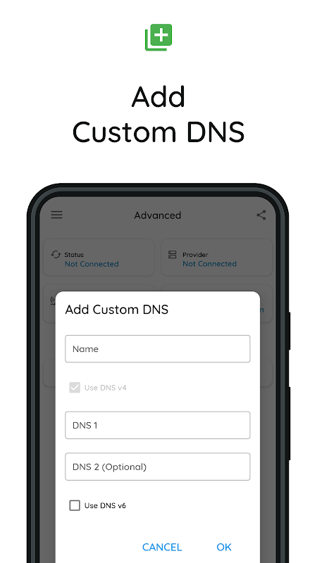 VPNService: DNS Changer использует базовый класс VPNService для создания DNS-соединения.