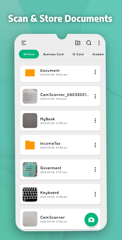 DocScanner — это бесплатное приложение для сканирования, которое превращает ваше мобильное устройство в мощный портативный сканер. Благодаря передовой технологии оптического распознавания символов он может автоматически распознавать текст, что делает его важным инструментом как для студентов, так и для профессионалов. Сканируйте все, что вам нужно, включая квитанции, контракты, бумажные заметки и факсимильные документы, и сохраняйте отсканированные изображения в виде многостраничных файлов PDF или JPG. Приложение предлагает различные режимы сканирования, включая ID-карту и паспорт, а также считыватель QR-кода.