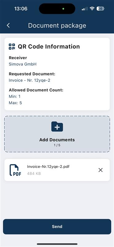 Компании-участники могут запросить у вас конкретные документы, используя QR-код. Они просто сканируют QR-код с помощью приложения Courier и отправляют необходимые документы напрямую и безопасно.
