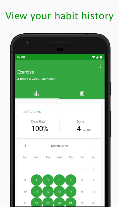Каждый раз, когда вы отмечаете вашу привычку как выполненную, она автоматически добавляется как запись в календаре. Вы можете легко увидеть в календаре, насколько хорошо вы делаете. Это идеально подходит для того, чтобы увидеть, насколько вы были последовательны в последние месяцы.