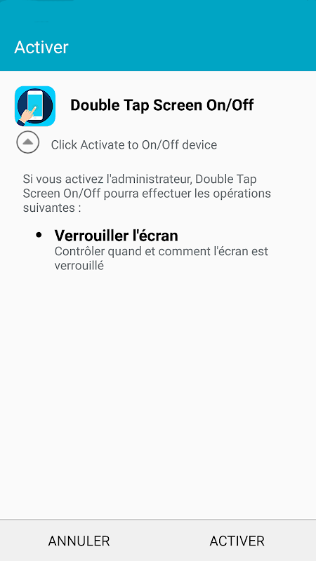 Double Tap Off / ON is an application that helps you protect the power button. Double Tap OFF also allows you to turn off the screen quickly by touching the Home screen twice. Just a touch to lock and turn off the screen.