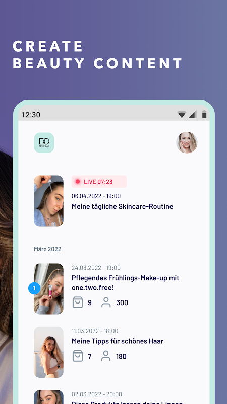 Поделитесь своим талантом к красоте и образу жизни в приложении DOUGLAS Creator и сделайте это на DOUGLAS Live.