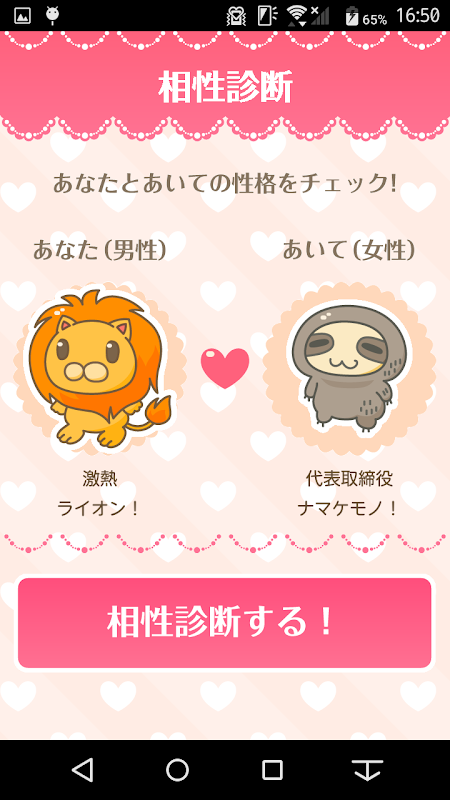 性格判断・相性診断アプリの決定版! 性格診断と相性診断2つが一緒になったアプリがついにAndroidで登場☆
