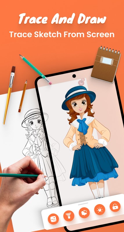 рисование трассировка и эскиз — это инструмент, который позволяет пользователям делать фотографии или изображения и обводить их, чтобы создать эскиз или рисунок. Обычно он имеет такие функции, как регулируемая толщина линии, различные стили кисти и инструмент ластика. Чтобы использовать приложение, пользователь сначала выбирает изображение для отслеживания или делает новую фотографию. Затем они могут использовать свой палец или стилус, чтобы нарисовать изображение, следуя контурам и деталям исходной фотографии. Приложение автоматически создаст прозрачный слой поверх фотографии, позволяя пользователю видеть исходное изображение во время трассировки.