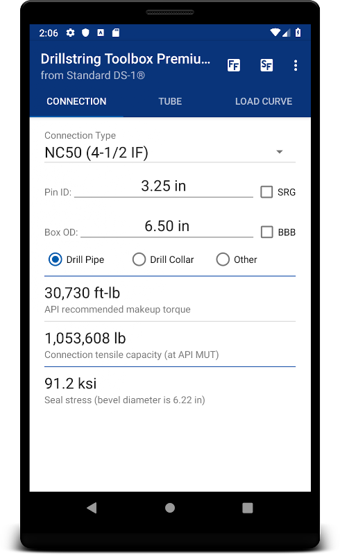 Продвинутые возможности калькулятор для соединений бурильной трубы и трубки.