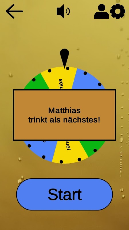 Einfach einen der 4 Spielmodi auswählen und schon öffnet sich das Trink-Roulette, das mit den Namen der Spieler beschriftet ist.