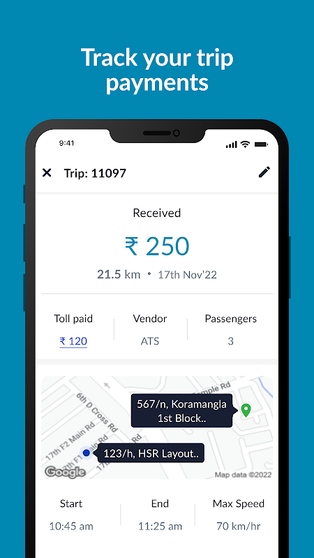Приложение, адаптированное для водителей. Это помогает водителям записывать свои поездки с минимальным ручным вмешательством. Водители также могут записывать информацию об оплате поездки.