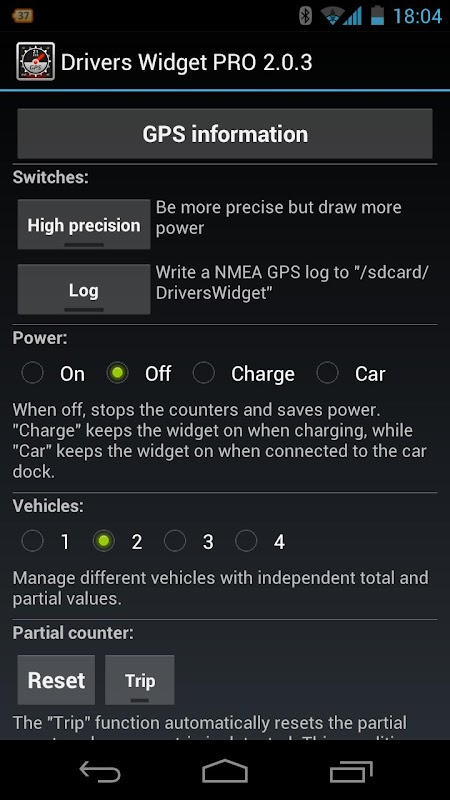 Виджет для водителей, используя GPS в устройстве для того, чтобы отслеживать пробег, скорость и другие параметры вашего автомобиля или мотоцикла.