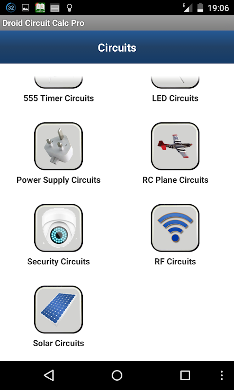 Droid Circuit Calc Pro имеет свободные электронные схемы, электронные калькуляторы, данные компоненты, разводка, ресурсы, данные кабели и многое другое. Это помогает и делает его намного проще делать расчеты для ваших схем и проектных работ.