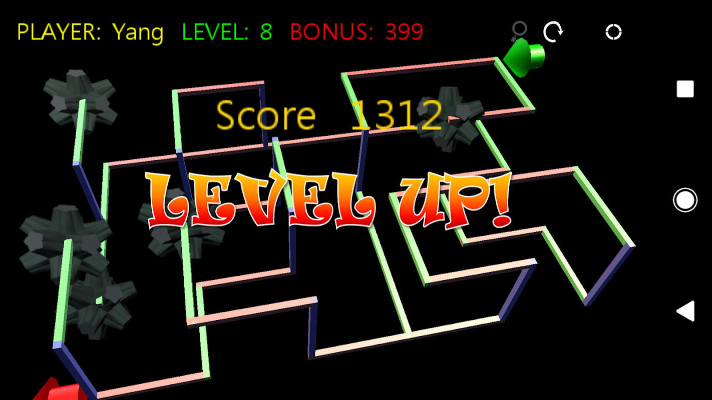 The largest configuration of the maze reaches 12x8x6 while NO level limit is given for paid players. In addition, the maze generation can be renewed to yield a new set of mazes for new fun and adventure.