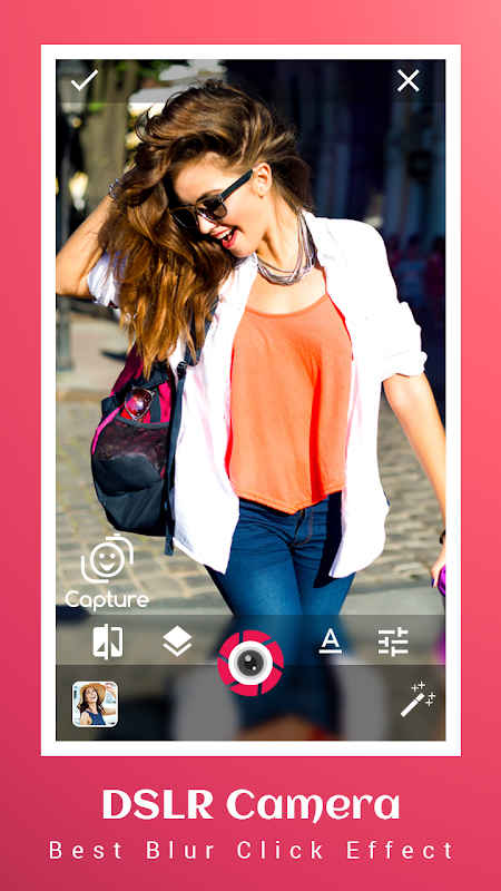 DSLR камера: Эффект размытия является простым в использовании и мощный редактор фотография и коллажи Добавить смайлики для ваших фотографий с Emojis улыбкой и улыбкой и популярными тегами!.